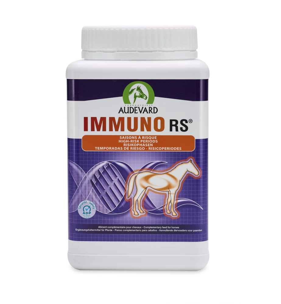 Audevard Immuno RS is een voedingssupplement voor paarden dat ingezet kan worden wanneer deze extra voedingsbehoeftes hebben. Hier bij kunt u bijvoorbeeld denken aan: intensieve wedstrijden/trainingen, verandering van omgeving, verzwakte paarden, verandering van weersomstandigheden, spenen of verandering van stalgenoten. Het bevat o.a. Echinacea, B-Glucan, Vitamine A, Vitamine C, Vitamine E, Zink en Selenium.