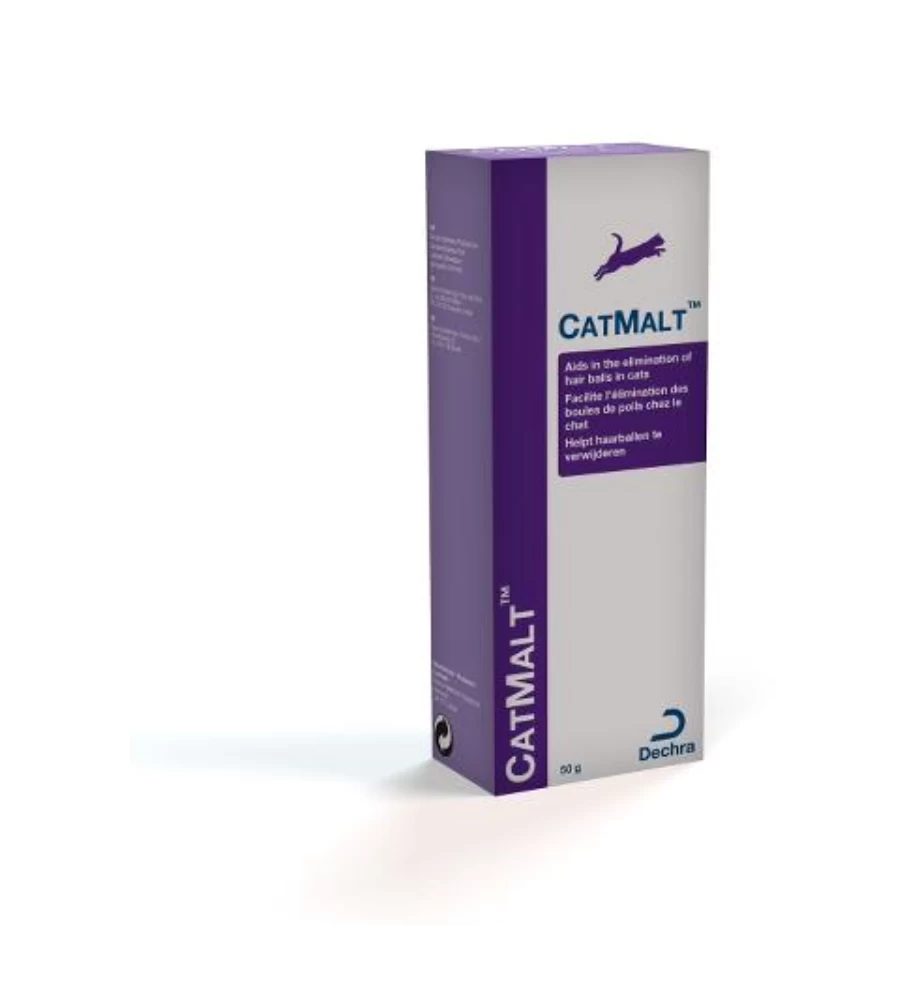 CatMalt van Dechra is een aanvullend voersupplement op basis van moutextract en vloeibare parafine voor katten die last hebben van haarballen.
