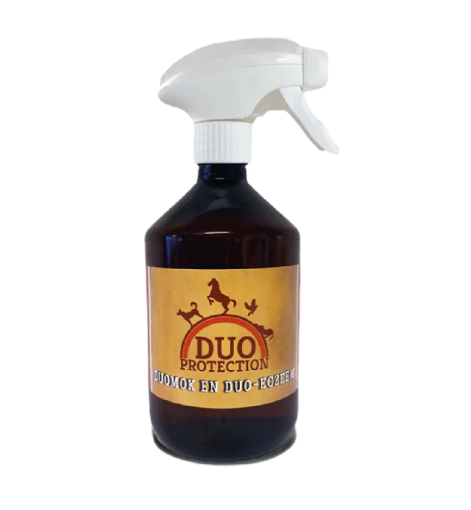 Duo Protection Mok & Eczeem Spray is een 100% natuurlijke spray die in te zetten is bij paarden die te maken hebben met mok of eczeem. De spray heeft een verzachtende en herstellende werking.