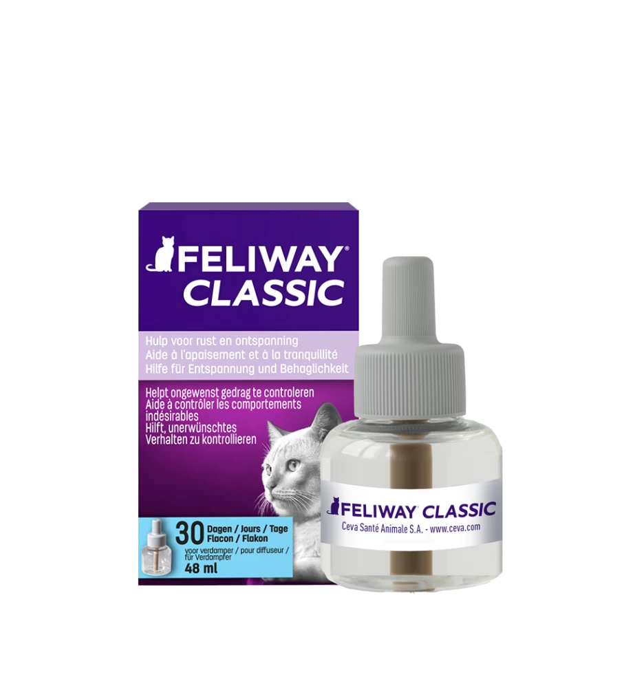 Feliway Classic is een verdamper voor in het stopcontact die een geruststellend feromoon voor katten verspreid. Hierdoor voelt de omgeving voor de kat geruststellend en vertrouwd aan. Het kan ingezet worden voor katten die te maken hebben met stress het hierdoor ongewenst gedrag zoals bijvoorbeeld sproeien vertonen.