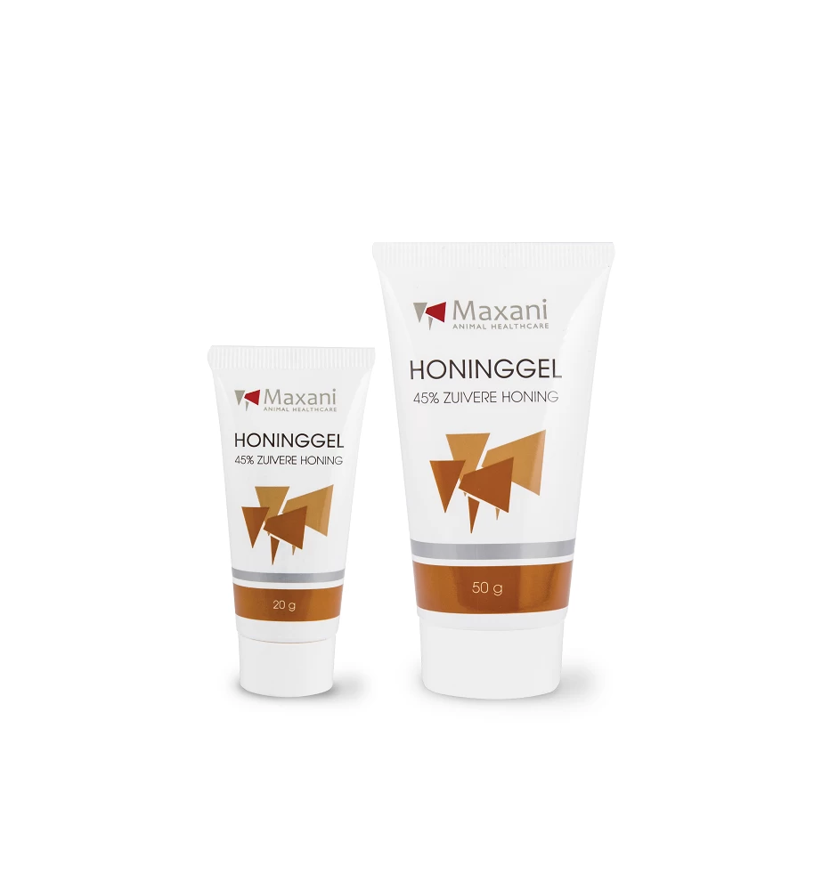 De Maxani Honinggel is een wondgel voor dieren op basis van 45% zuivere geözoneerde bergweide honing.