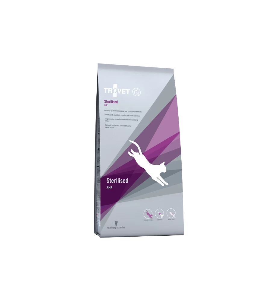 De Trovet Sterilised SHF is speciaal samengestelde, complete voeding om aan de veranderde voedingsbehoefte van gecastreerde/gesteriliseerde katten te voldoen. Het kan al gegeven worden aan kittens vanaf zes maanden. Om overgewicht tegen te gaan is de energiedichtheid in deze voeding verlaagd. Hierdoor kan ondanks een verminderde energie behoefte toch een normaal maaltijdvolume gegeven worden.