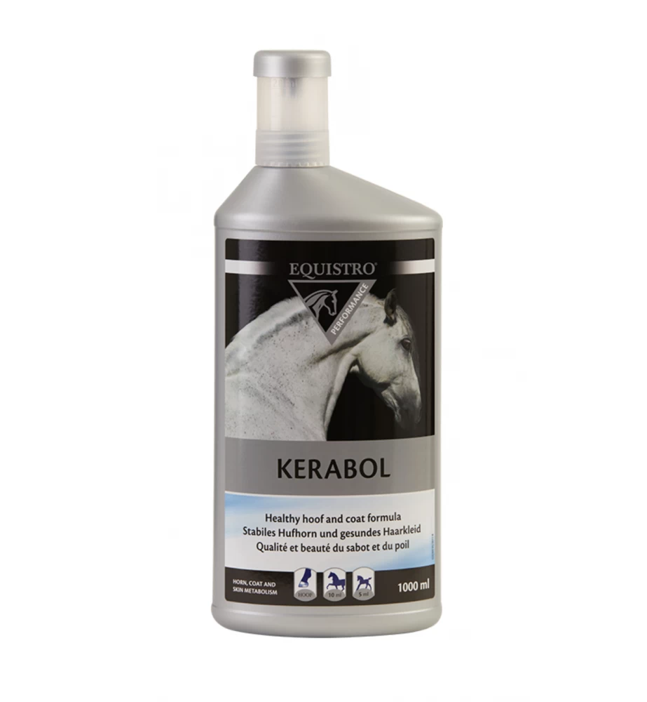 Equistro Kerabol is een vloeibaar aanvullend diervoeder op basis van zink, magnesium, selenium, methionine en D-biotine voor paarden en pony’s ter ondersteuning van een gezonde en glanzende vacht. Daarnaast kan het ingezet worden ter ondersteuning van gezonde hoezen. Het middel is dopingvrij en mag blijvend gegeven worden.